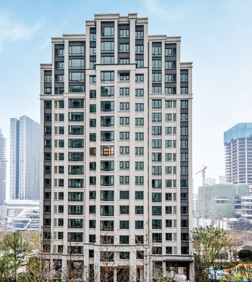 要灵活展现建筑风格美感,材料效果的一致性非常重要。以重庆某高端住宅项目为例,应用了立邦臻丽石®体系的外墙,从材料端降低了发花、杠影、色差等常见问题,远观外立面表面平整、色调均匀、风格统一,配合亚洲印象黄金麻草木秋香色,外表沉静内敛,体现出情景交融的东方哲思之美。