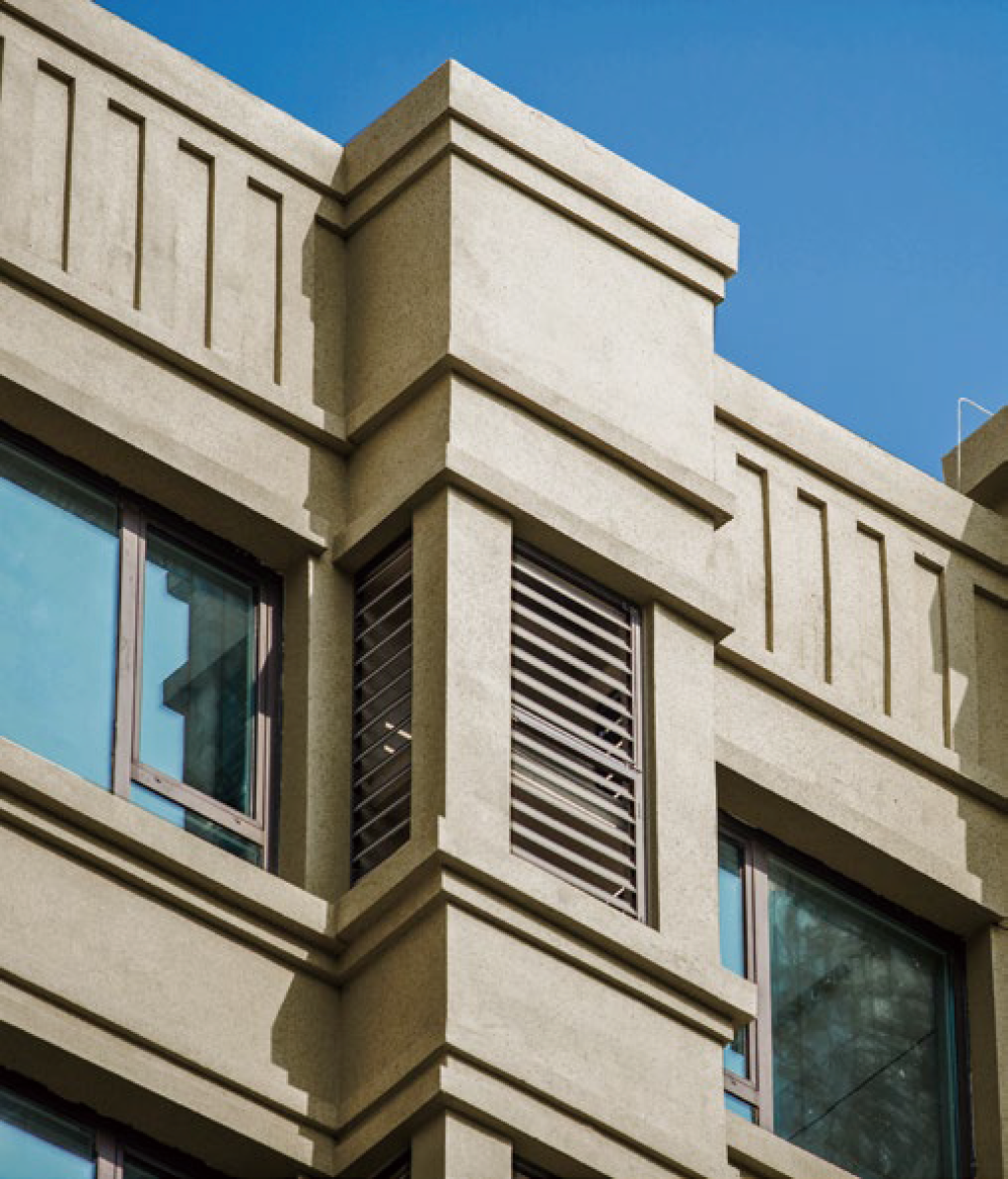云南红河州某湖滨生态城市综合体为外墙应用立邦臻丽石®体系,因其漆膜致密不易产生孔隙孔洞,加上体系配套的清漆罩面,不仅形成稳定逼真的石艺效果,更具备不易沾灰、不易藏灰等特点,大大提升了外墙面耐污的能力。